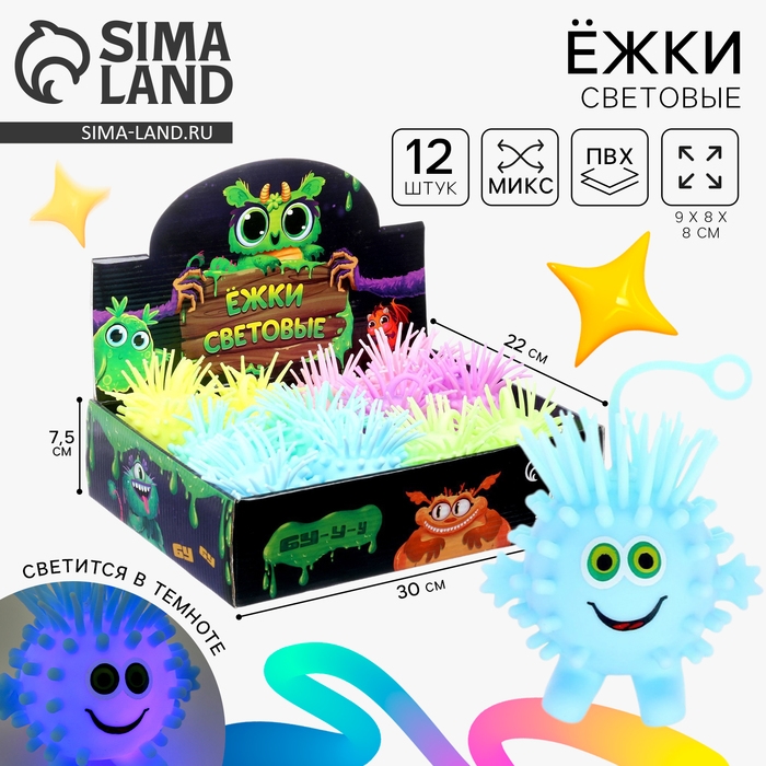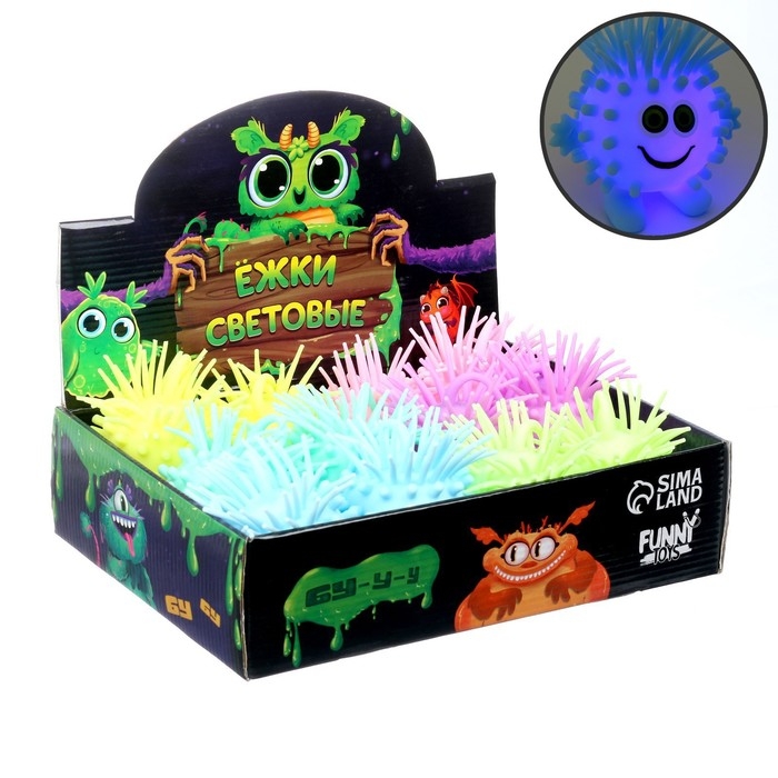 Мяч детский резиновый ёжка световой «Улыбака», цвета МИКС, в шоубоксе