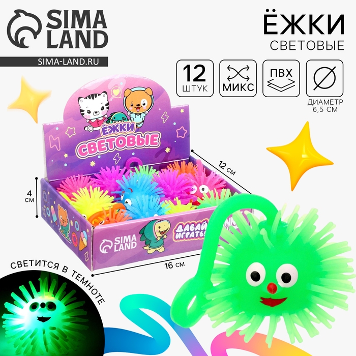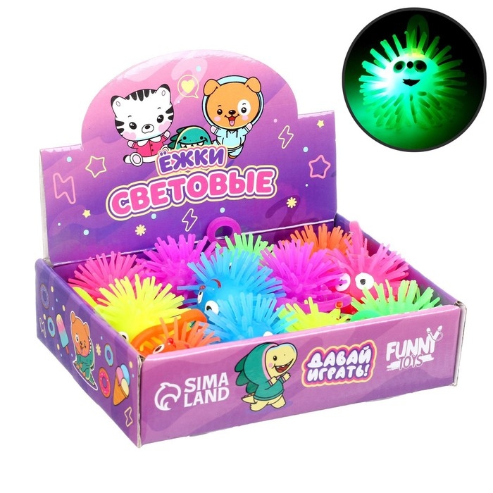 Мяч детский резиновый ёжка световой «Зверята», цвета МИКС, в шоубоксе