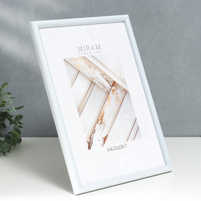 Фоторамка пластик "МИРАМ" 21х29,7 см, (A4) белый (пластиковый экран)