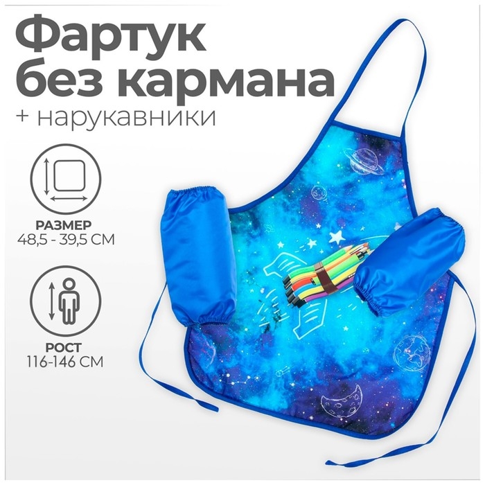 Фартук для труда + нарукавники, 485 х 395/250 х 160 мм, рост 116-146 см, Calligrata, "Ракета"