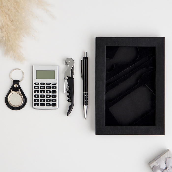 Набор подарочный 4в1 (ручка, калькулятор, брелок, штопор с открывалкой)