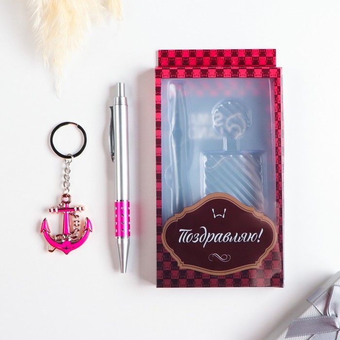Набор подарочный 2в1 (ручка, брелок якорь) микс
