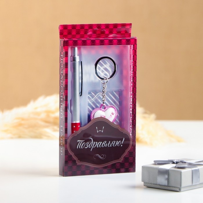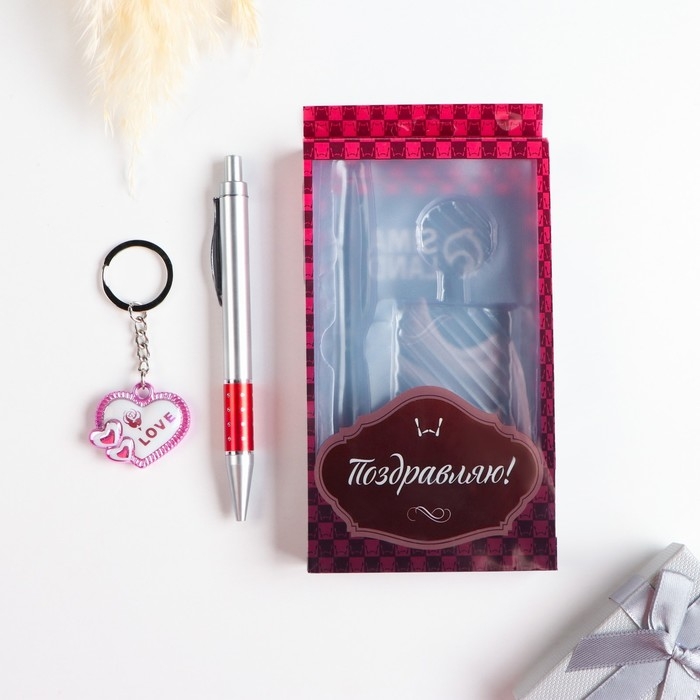 Набор подарочный 2в1 (ручка, брелок сердечко) микс