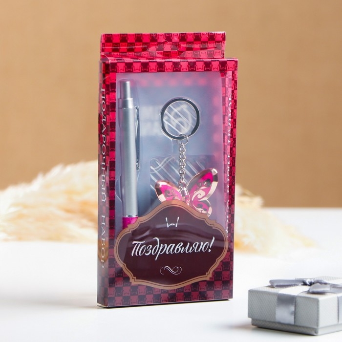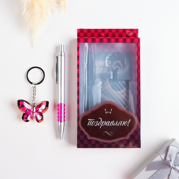 Набор подарочный 2в1 (ручка, брелок бабочка) микс