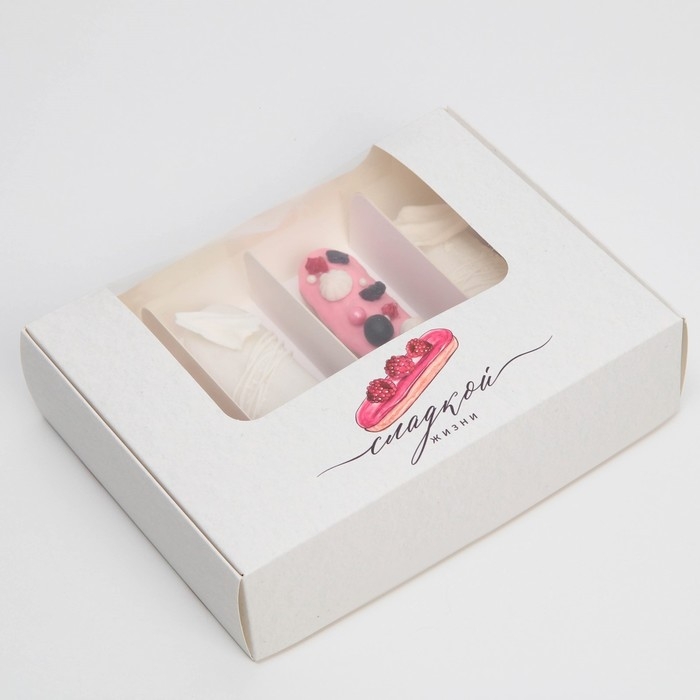 Коробка для эклеров, кондитерская упаковка, 4 вкладыша, «Сладкая жизнь», 20 х 15 х 5 см