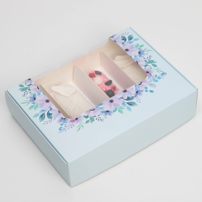 Коробка складная, под 3 эклера, кондитерская упаковка "Цветочки", 20 х 15 х 6 см