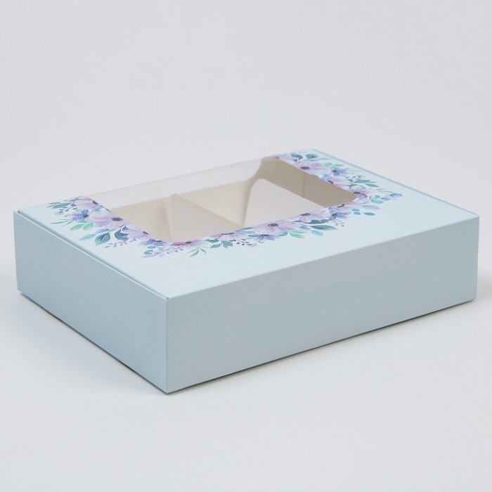 Коробка для эклеров, кондитерская упаковка, 4 вкладыша, «Фиалки», 20 х 15 х 5 см