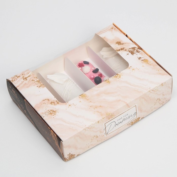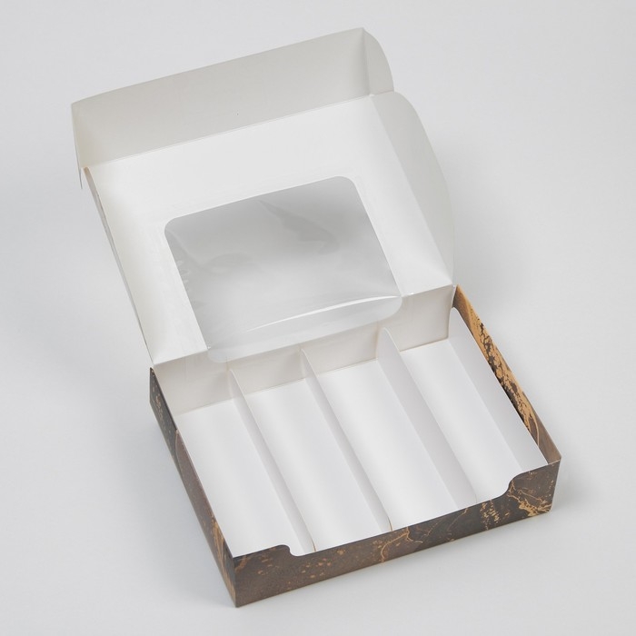 Коробка для эклеров, кондитерская упаковка, 4 вкладыша, «Мрамор», 20 х 15 х 5 см