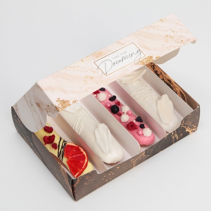 Коробка складная, под 3 эклера, кондитерская упаковка "Ты прекрасна", 20 х 15 х 6 см