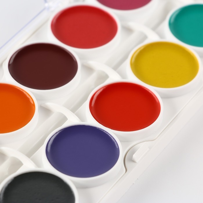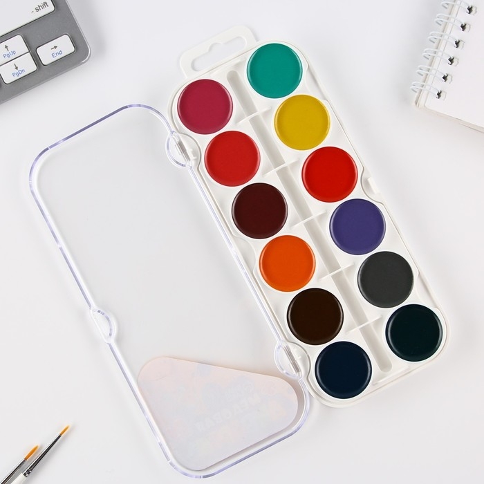 Краски акварельные, в кюветах, с кистью, 12 цветов
