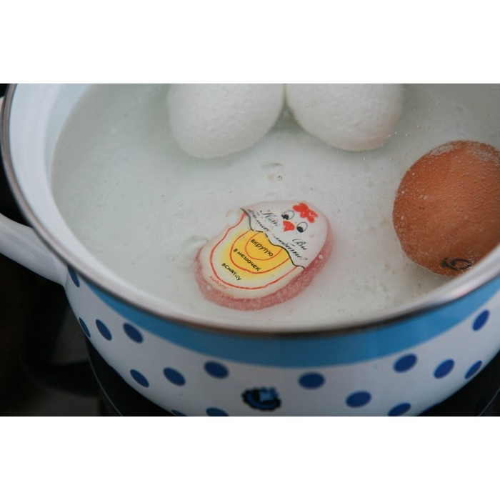 Устройство просто использовать: достаточно поместить его вместе с яйцами при варке и наблюдать. В процессе таймер будет менять цвет — это поможет определить степень готовности яиц. Оригинально и просто!