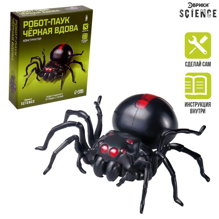Робот паук «Чёрная вдова» Эврики, конструктор, 43 детали, на воде с солью