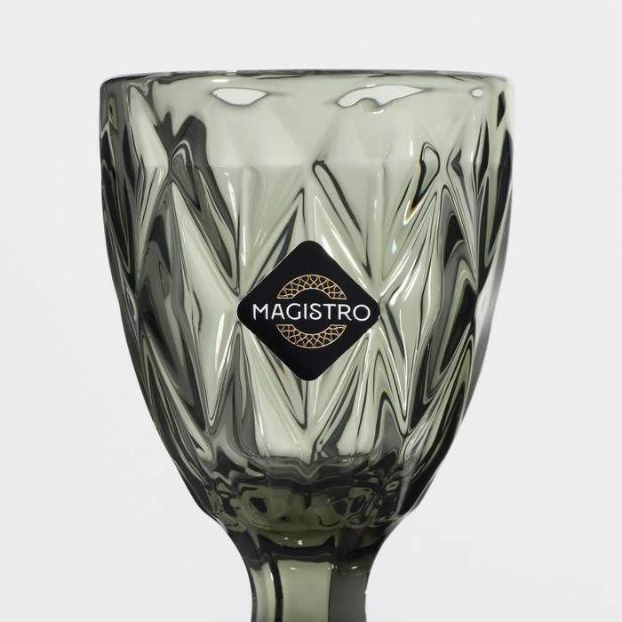 Рюмка Magistro изготовлена из прочного цветного стекла, которое имеет красивый характерный рельеф. У рюмки эффектная форма кубка и широкая ножка, её удобно держать в руке. Такое стекло не теряет свой товарный вид даже при ежедневном применении.