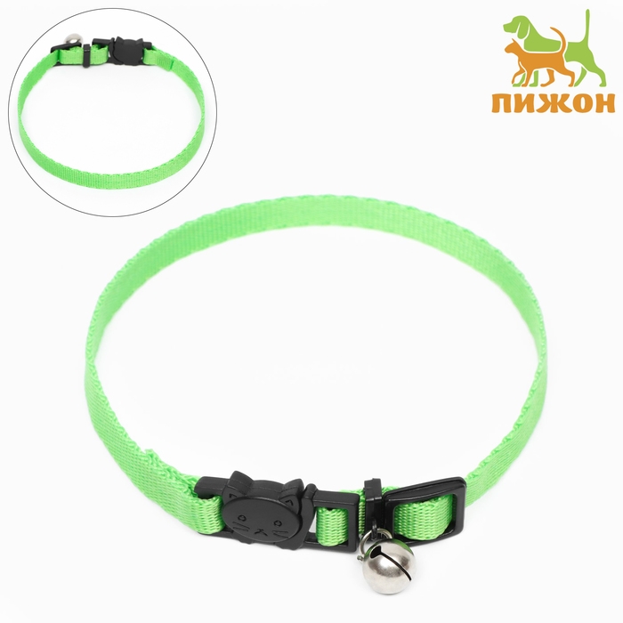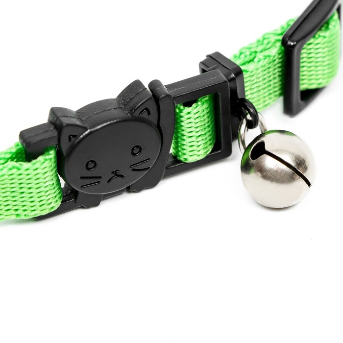 Ошейник кошачий с бубенчиком, 30 х 1 см, полиэстер, зелёный