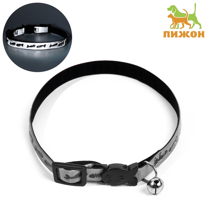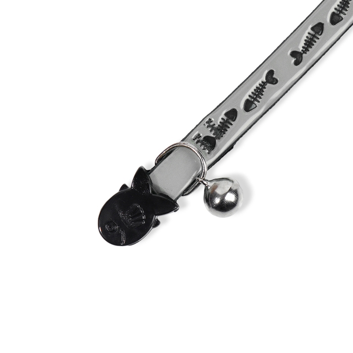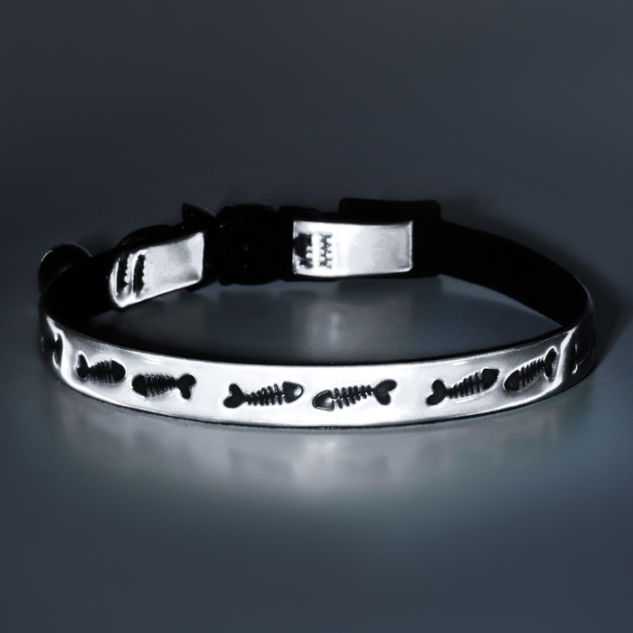 Ошейник кошачий со светоотражающим покрытием "Рыбки", 30 х 1 см, серебристый