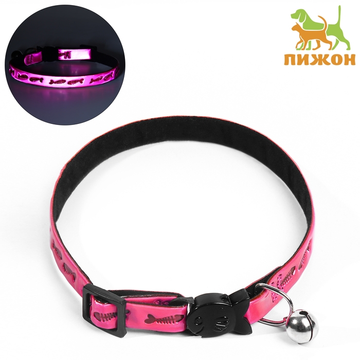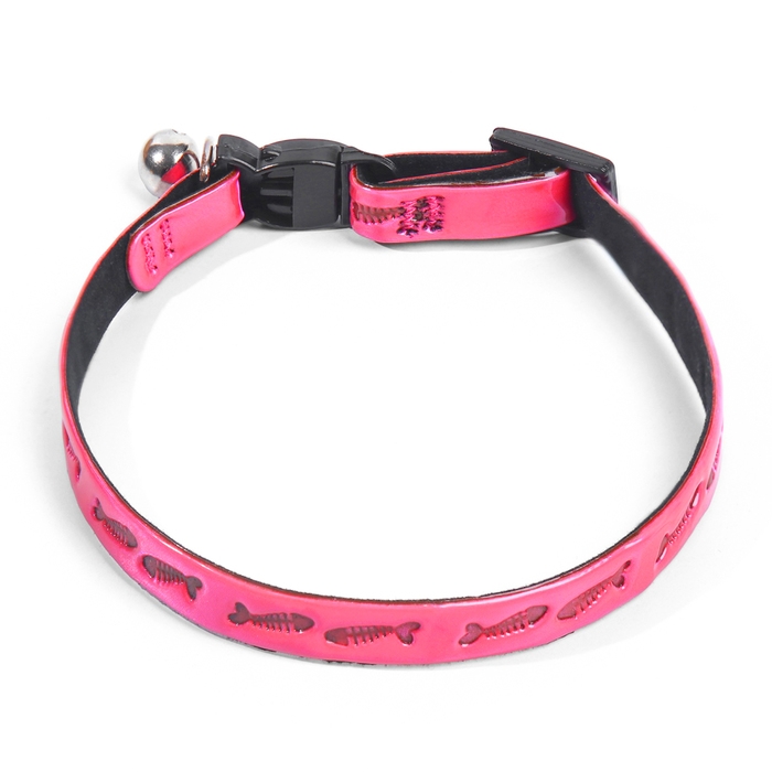 Ошейник кошачий со светоотражающим покрытием "Рыбки", 30 х 1 см, розовый