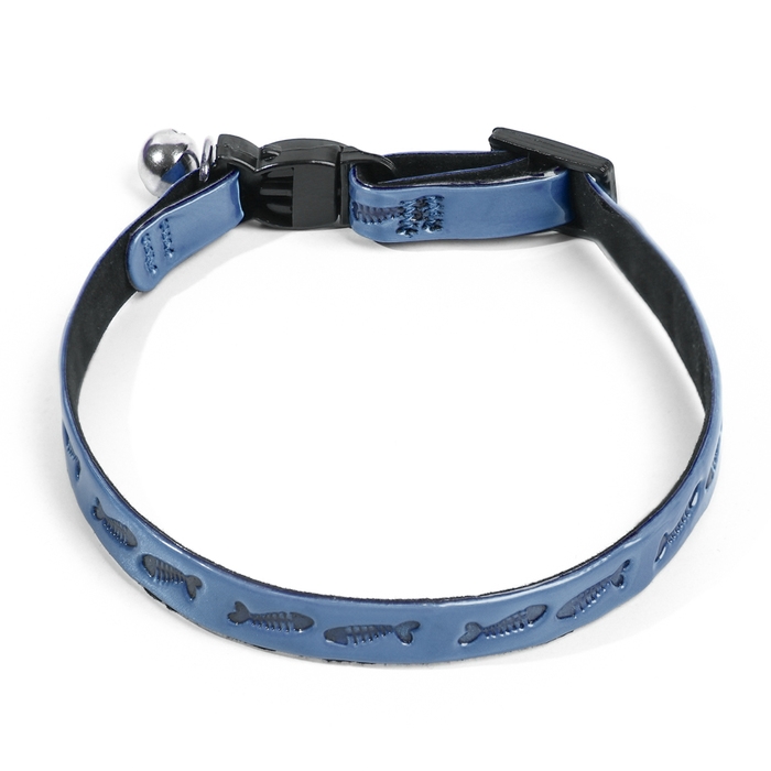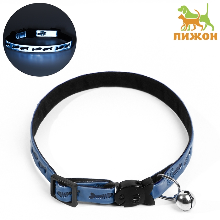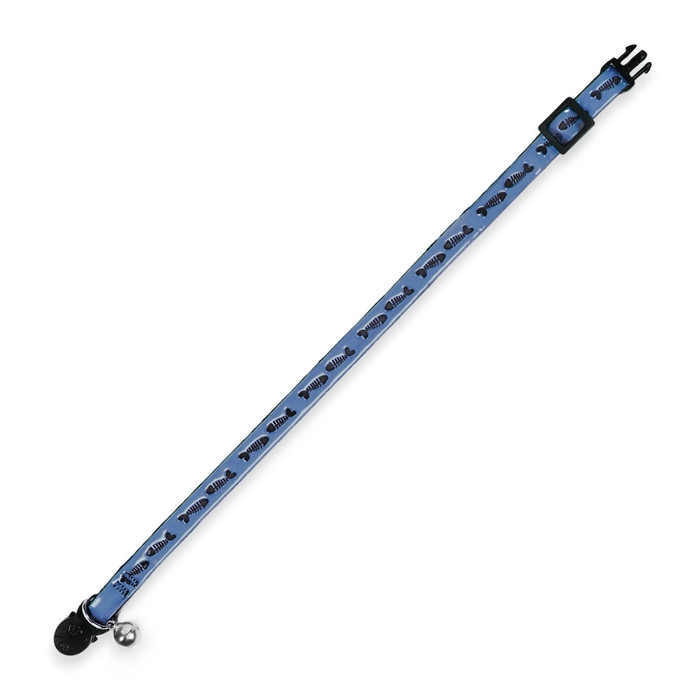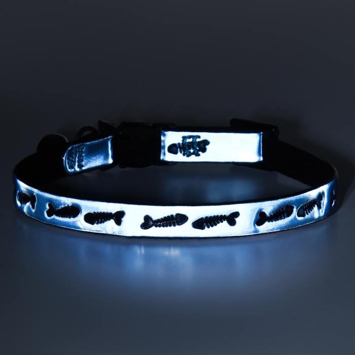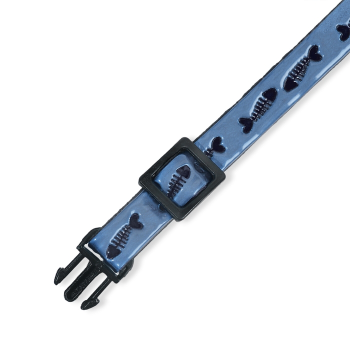 Ошейник кошачий со светоотражающим покрытием "Рыбки", 30 х 1 см, голубой