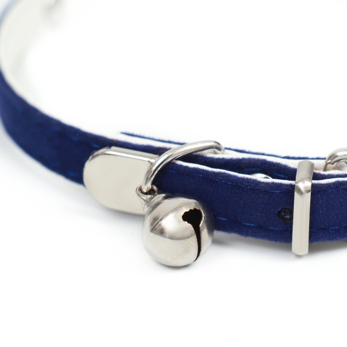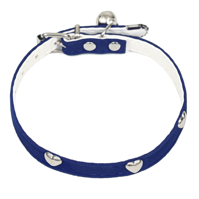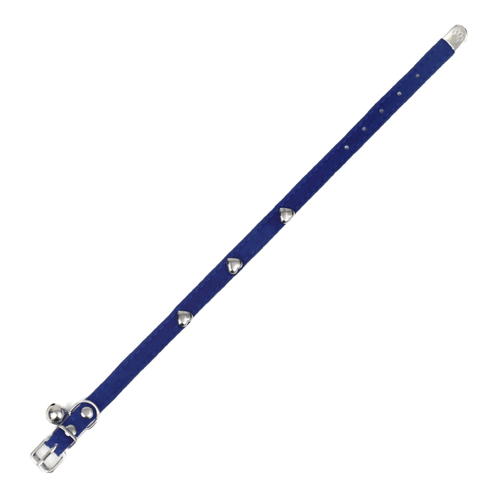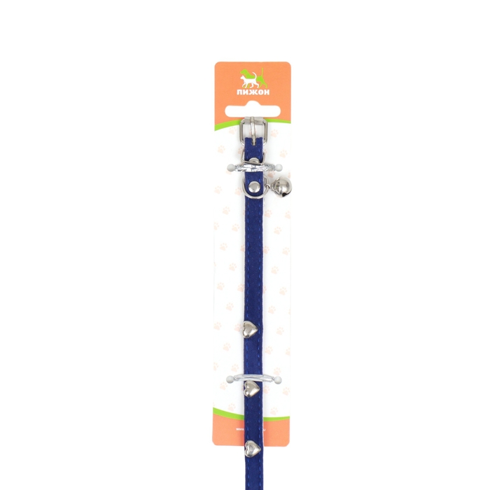 Ошейник бархатистый с сердечками, 32 х 1 см, ОШ 23-29, текстиль и кожзам, синий