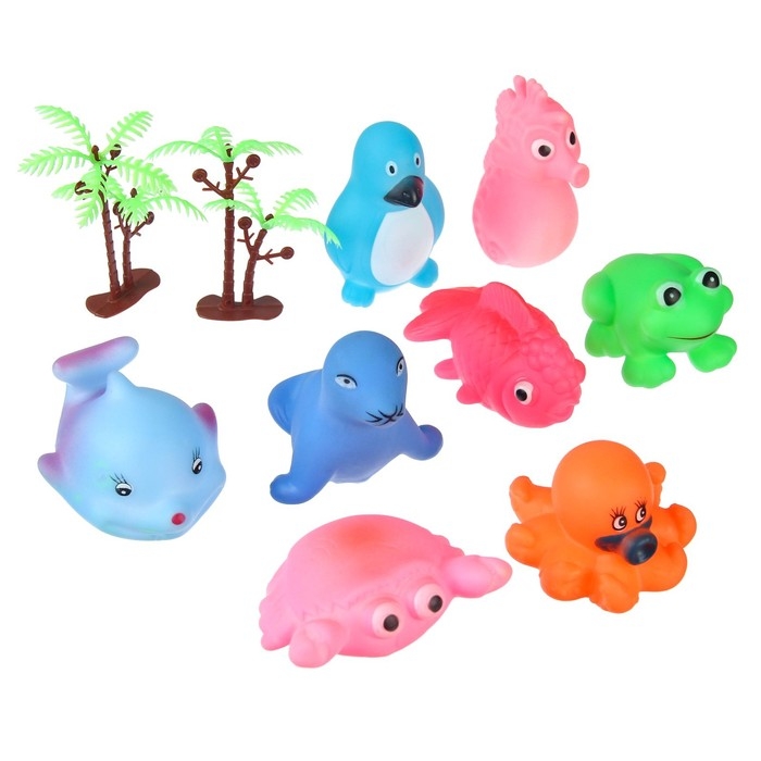 Набор резиновых игрушек для ванны «На острове», с пищалкой, 8 шт, Крошка Я