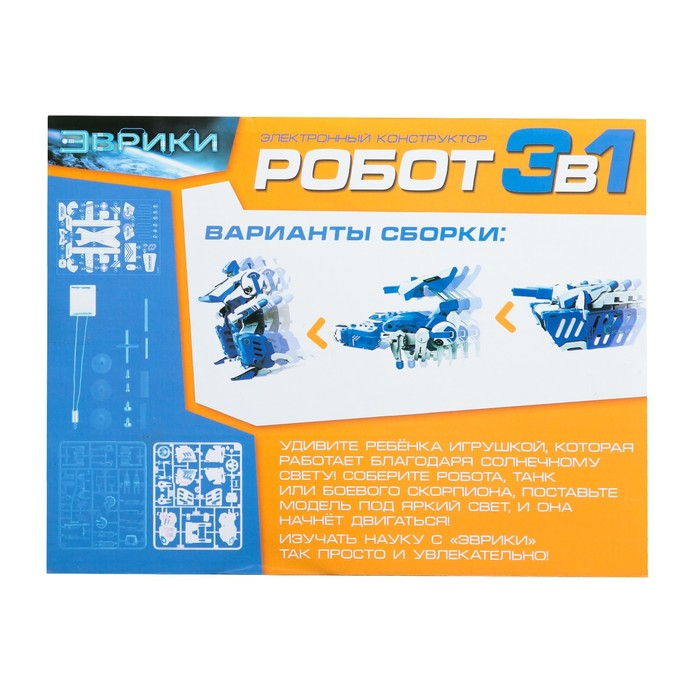 Конструктор «Робот», 3 в 1, работает от солнечной батареи, 61 деталь, 1 лист наклеек