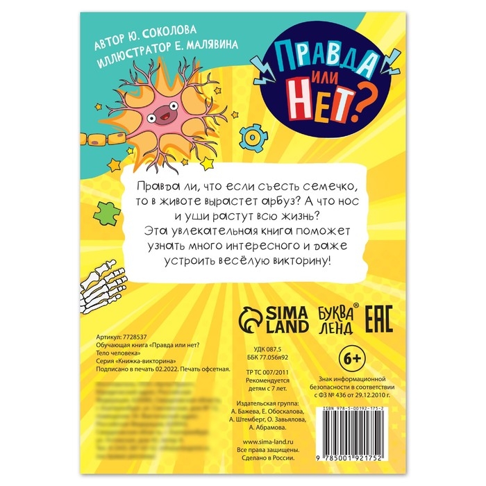 Обучающая книга «Правда или нет? Тело человека», 44 стр.