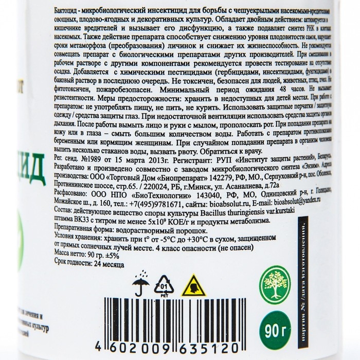 Биоинсектицид Бактоцид от чешуекрылых насекомых вредителей, 90 г