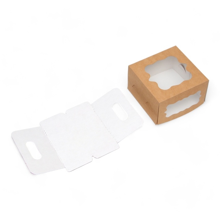 Коробка под бенто-торт с окном, белая, 14 х 14 х 8 см