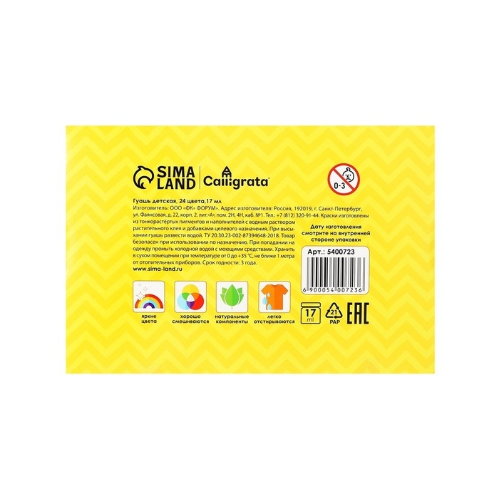 Гуашь для рисования Calligrata серии "Отличный выбор" предназначена для творческих занятий в школе и дома.