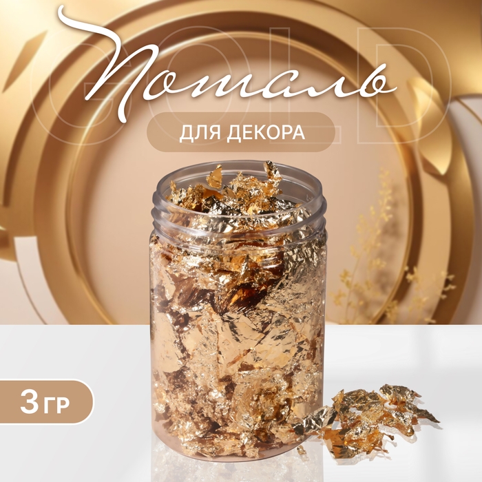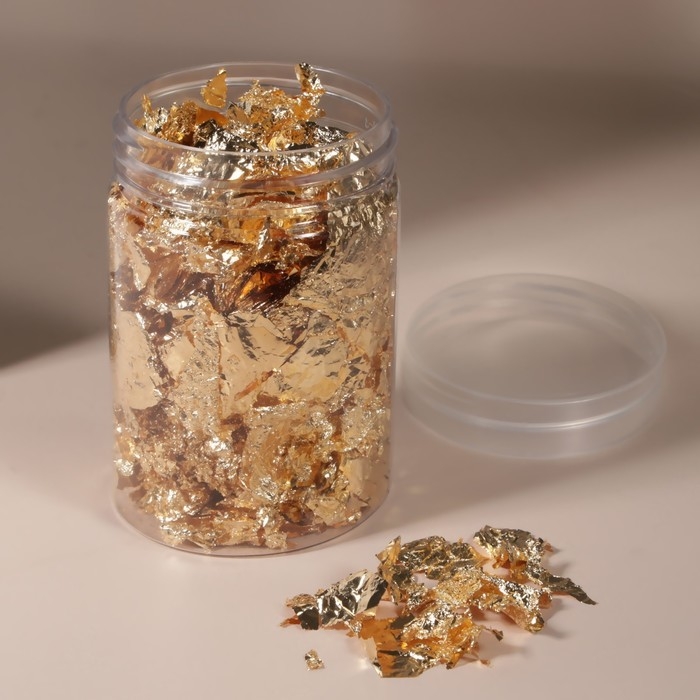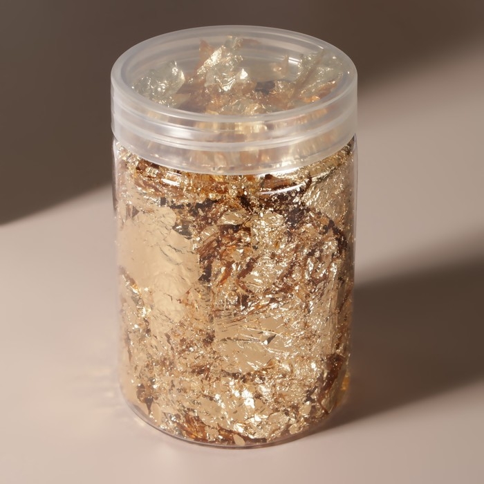 Поталь для декора ногтей, 3 гр, в пластиковой банке, цвет золотистый