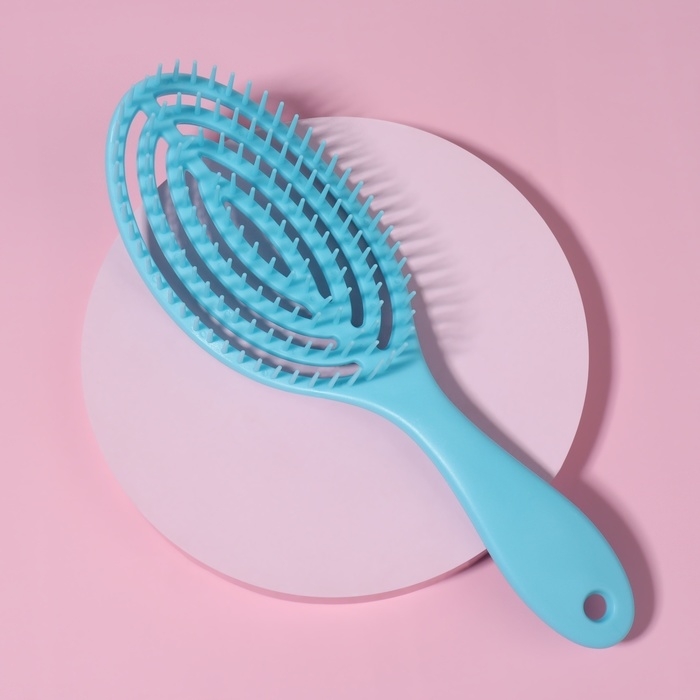 Расчёска массажная, для сушки волос, 7,5 × 23,5 см, цвет голубой