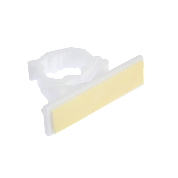 Крепление площадки к поверхности с одной стороны происходит благодаря слою нетвердеющего клеевого состава (адгезива) и клипсой с другой для фиксации кабеля или провода.