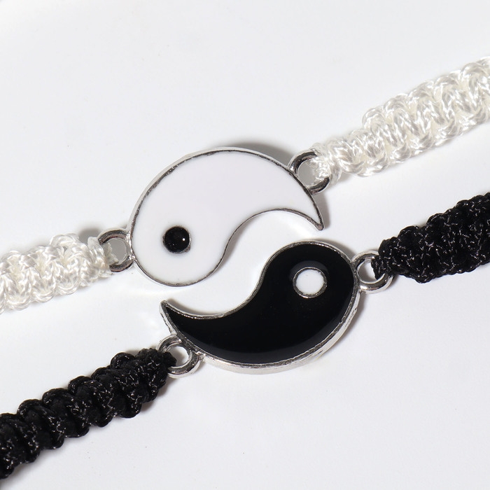 Браслеты «Неразлучники» инь-ян, дружба, цвет чёрно-белый