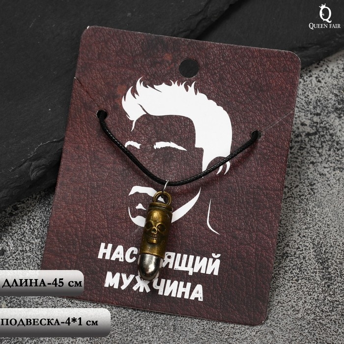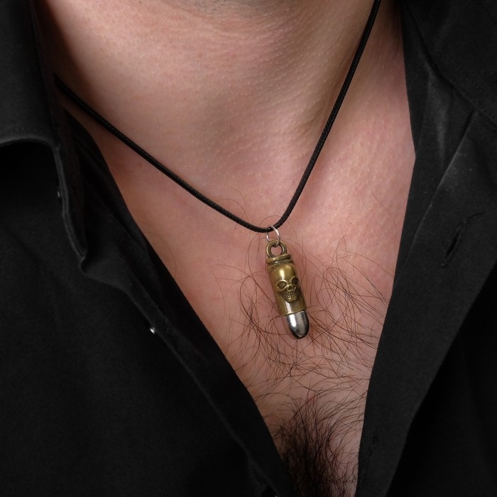 Кулон мужской «Пуля» с черепом, цвет чернёное золото на чёрном шнурке, 45см