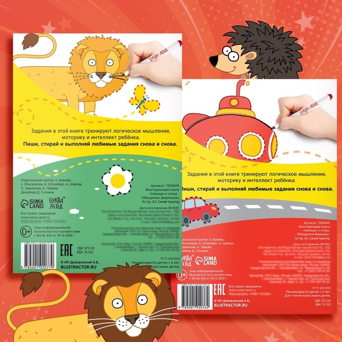 Набор многоразовых книг «Напиши и сотри», 2 шт. по 16 стр., А5, + 2 маркера, Синий трактор
