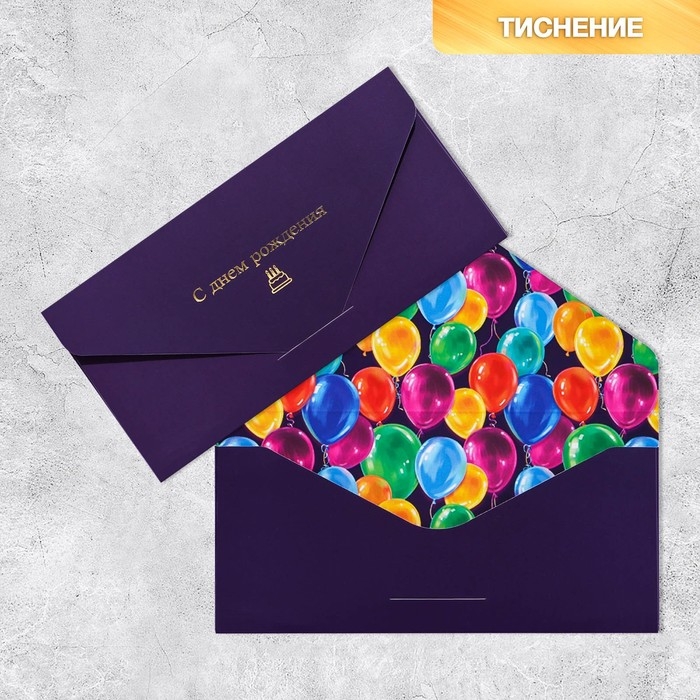 Конверт подарочный «С Днем Рождения», софт тач, тиснение, 19 × 9,2 см