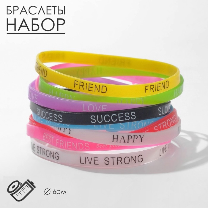 Силиконовый браслет «Классика», набор 10 шт., цвет МИКС, 6,5 см