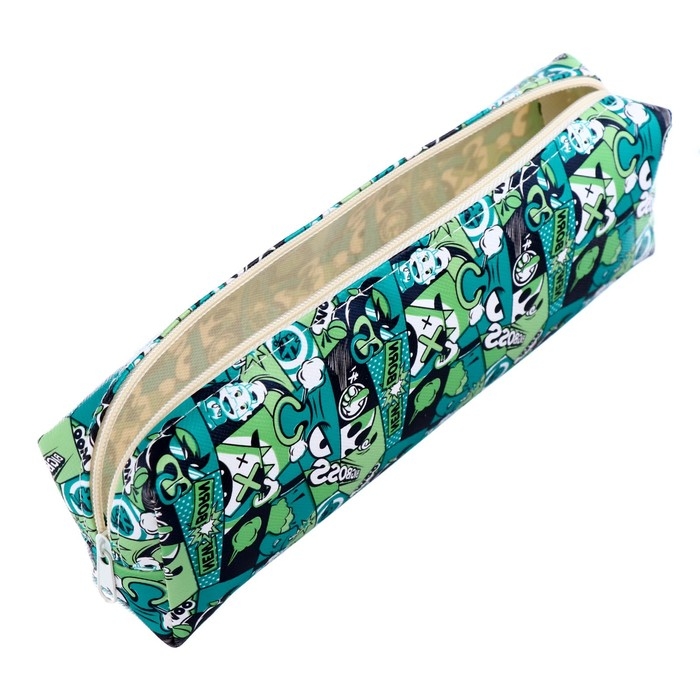 Пенал прямоугольной формы с одним вместительным отделением застегивается на молнию с удобным бегунком.