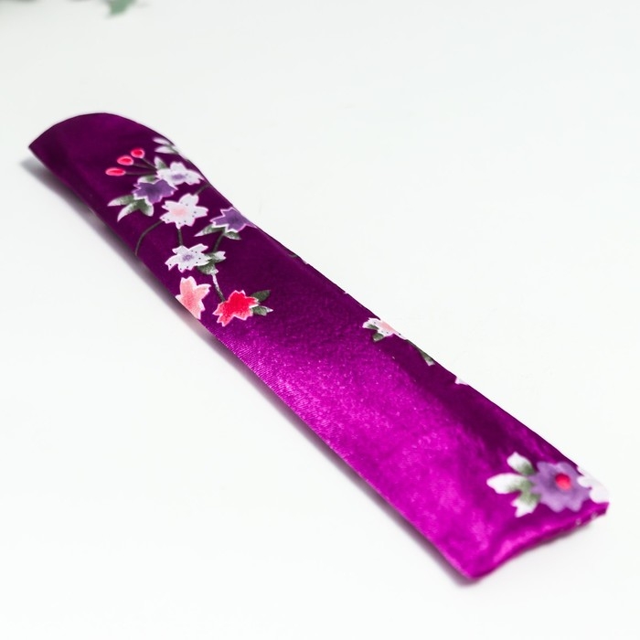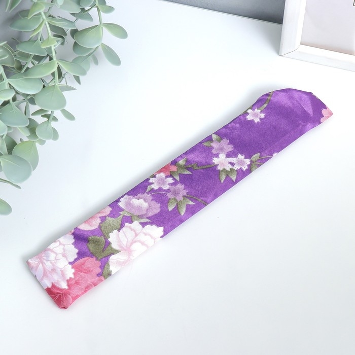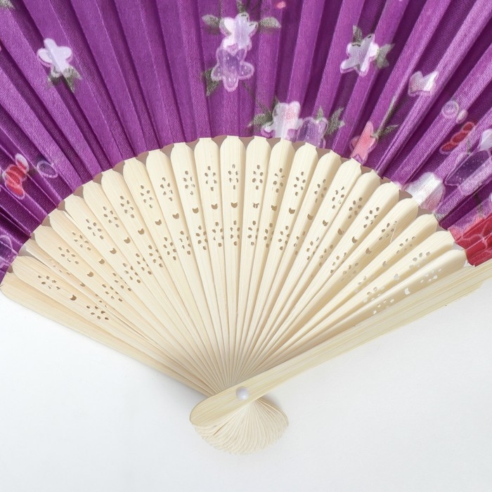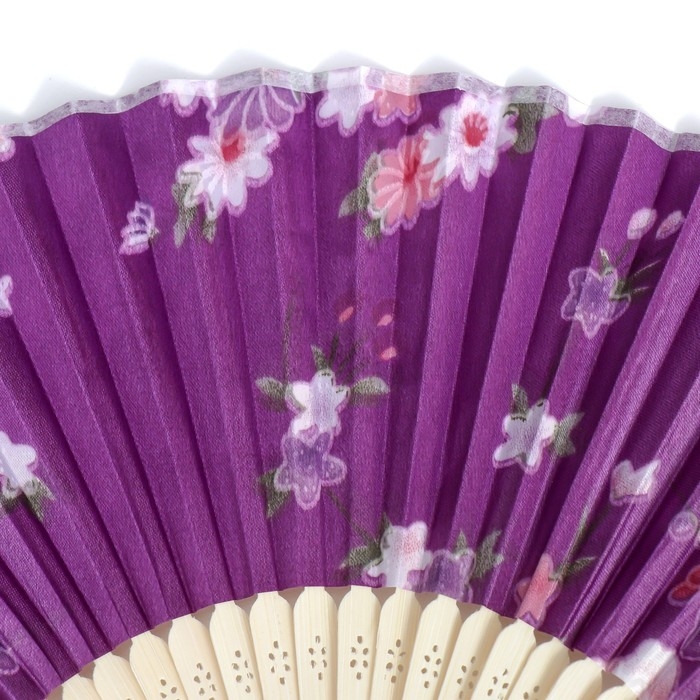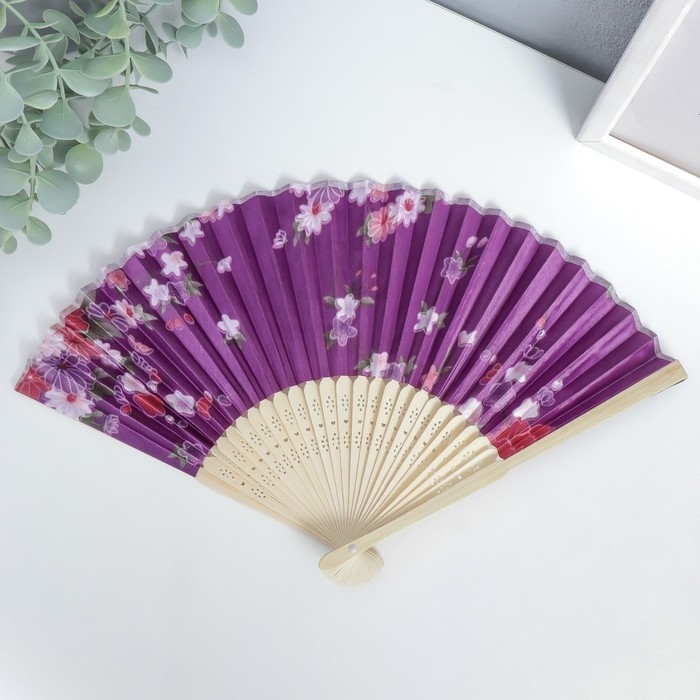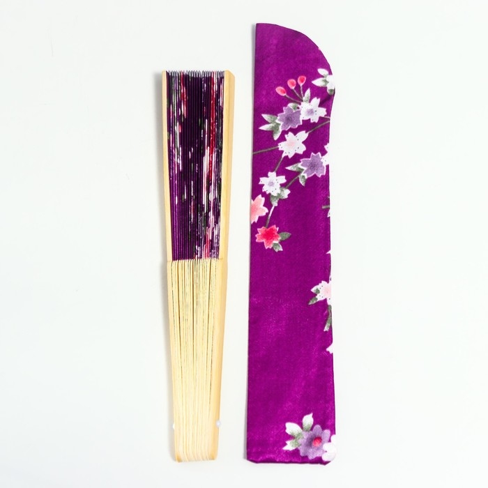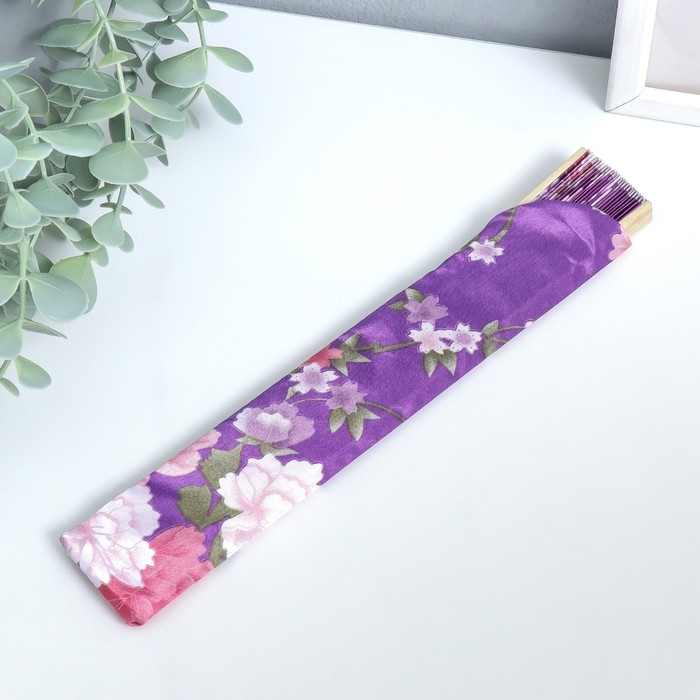 Веер бамбук, текстиль h=21 см "Цветы" с чехлом, фиолетовый