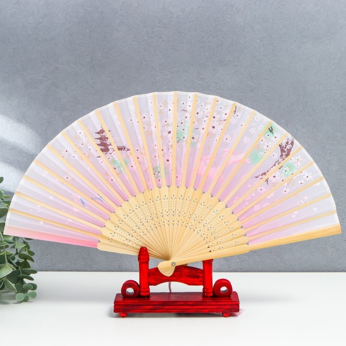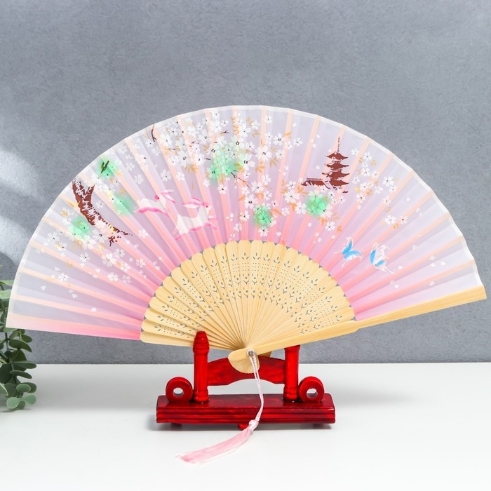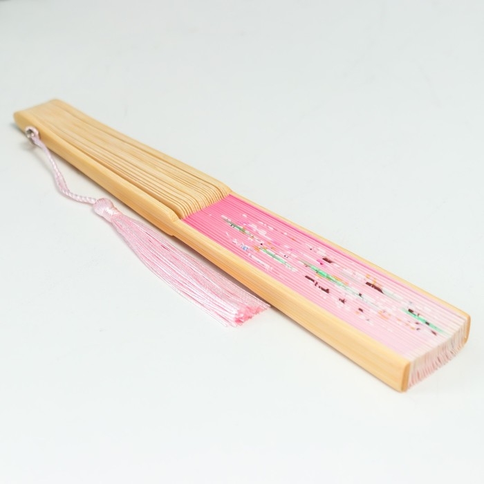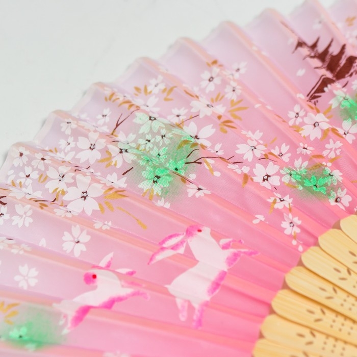 Веер дерево, текстиль h=21 см "Зайчики у сакуры" розовый, с кисточкой