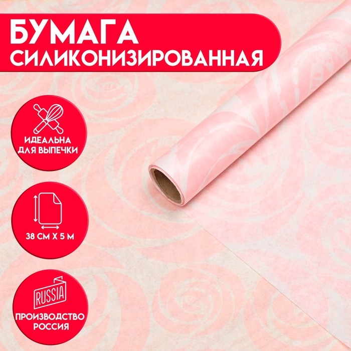Бумага силиконизированная «Розы пудровые», для выпечки, 0,38 х 5 м