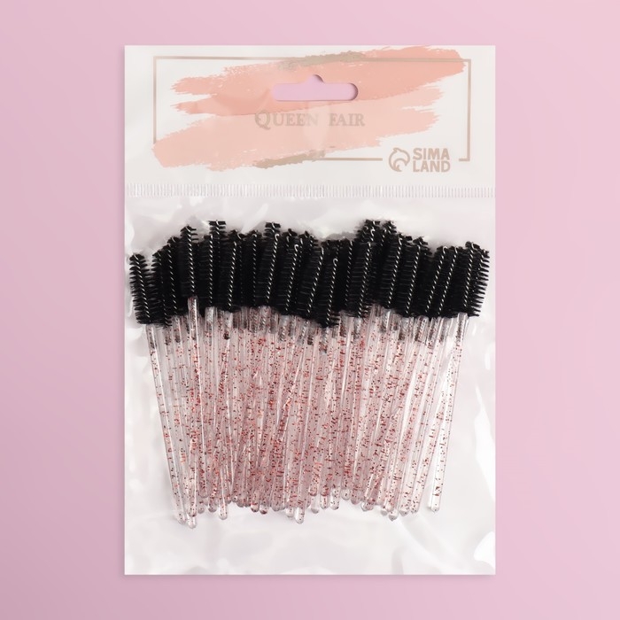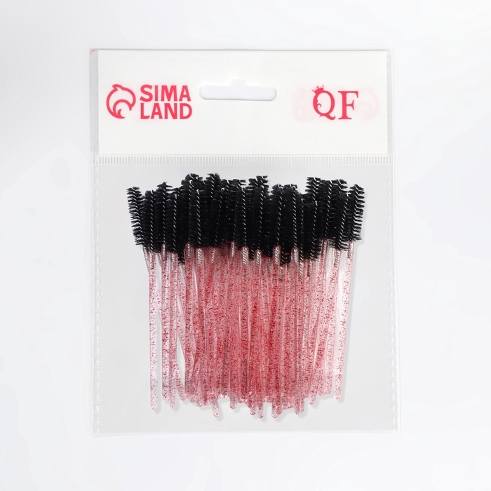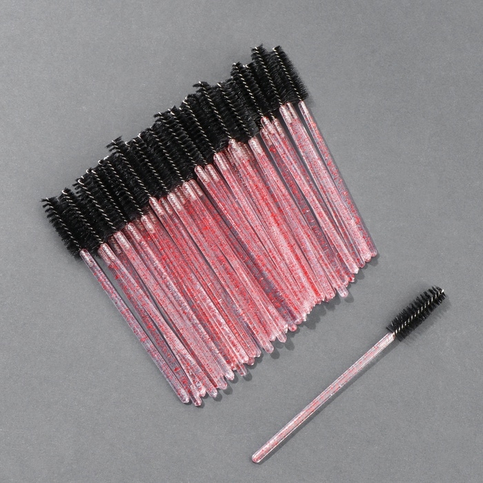 Набор щёточек для бровей и ресниц, 9,5 см, 50 шт, цвет чёрный/красный/прозрачный