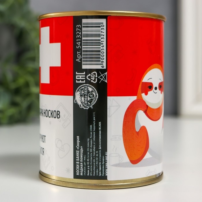 Носки в банке "Скорая модная помощь" (внутри носки мужские, цвет чёрный)
