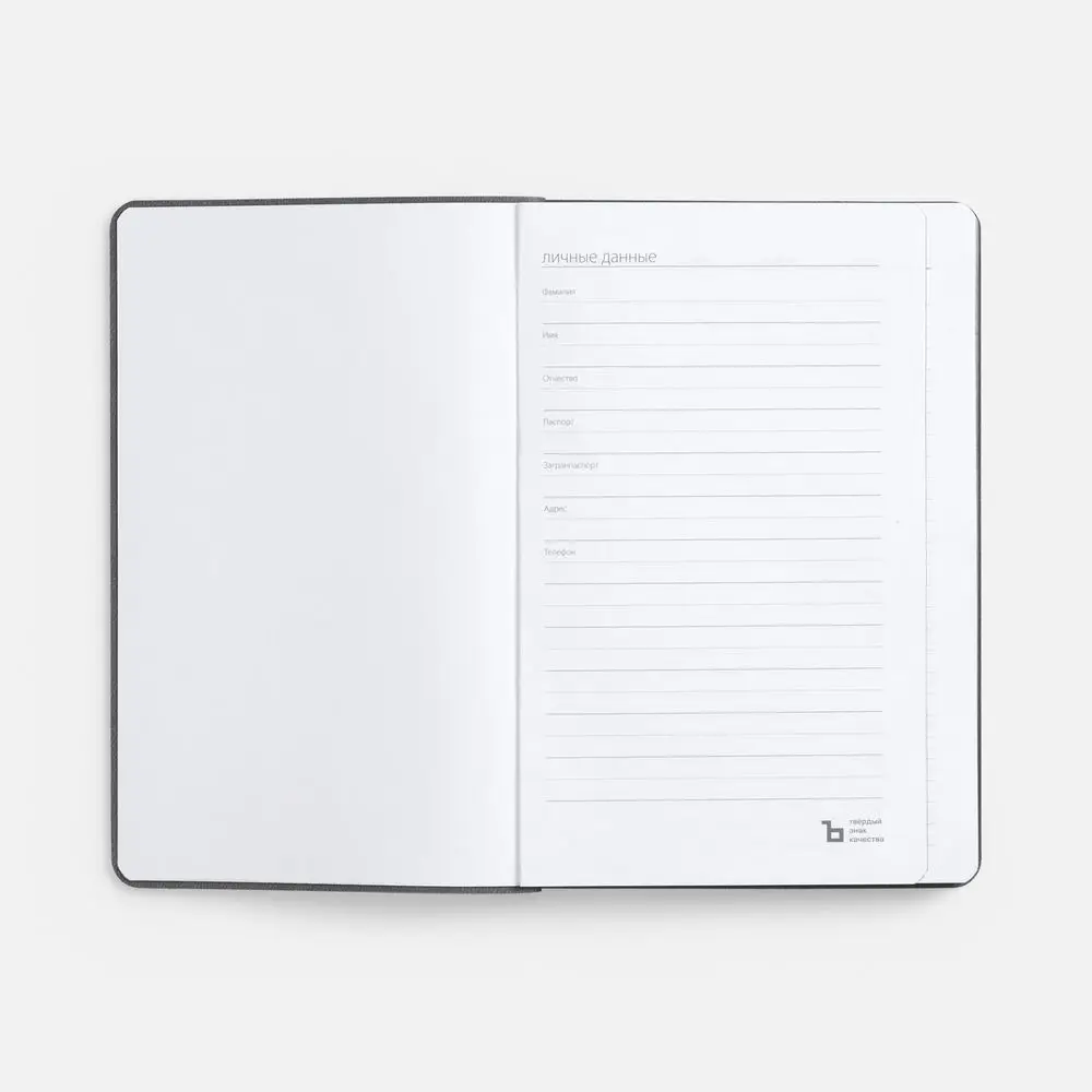 Ежедневник с гибкой обложкой выполнен из материала Soft Touch, белый BB и серого Latte (внутренняя часть обложки).