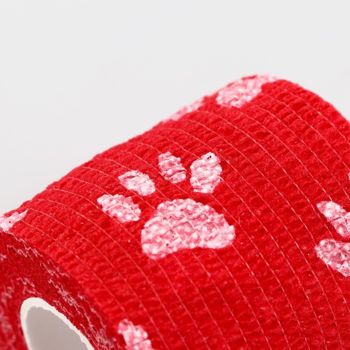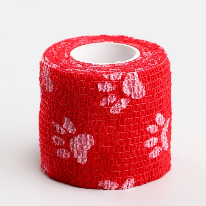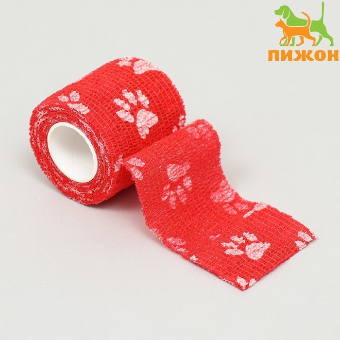 Бинт самофиксирующийся "Лапки", 5 см, макс. растяжимость 4,5 м, красный