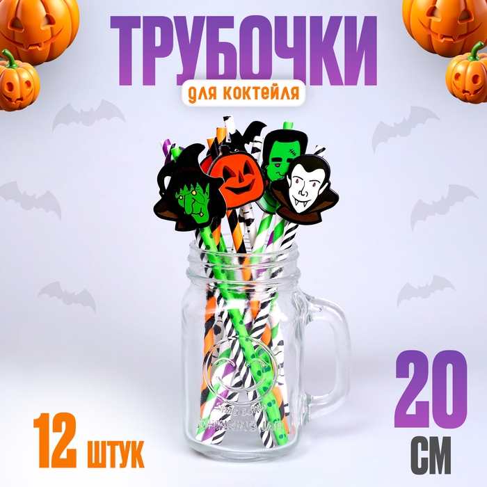 Трубочки для коктейля «Хэллоуин», в наборе 12 штук