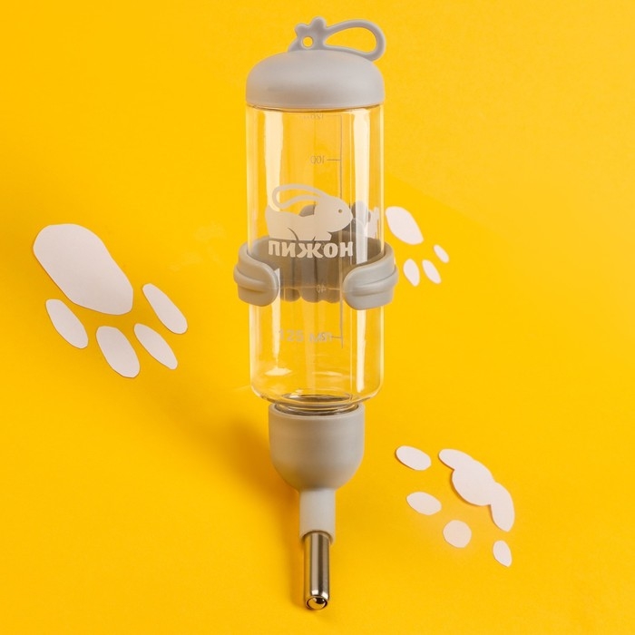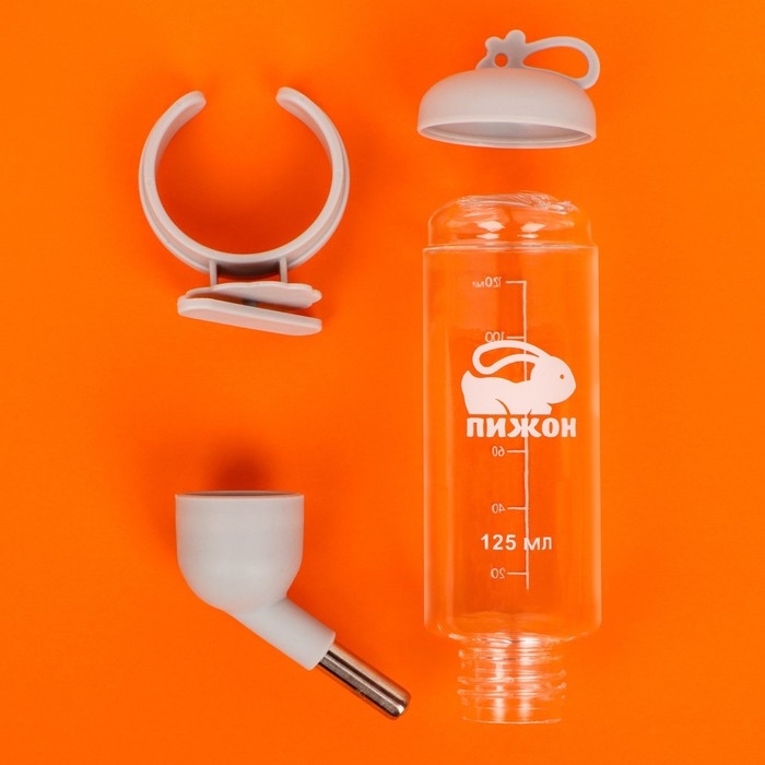 Преимущества поилки: -металлический носик невозможность погрызть; -маленькой колбе не застаивается вода; -удобное крепление на клетку -прозрачность бутылки позволяет отслеживать уровень воды у питомца; -не протекает; -имеет разборную конструкцию для тщательной гигиены. Объем: 125 мл;