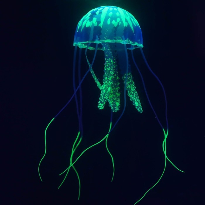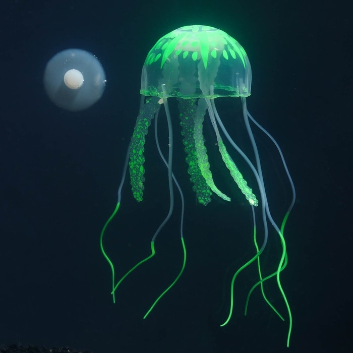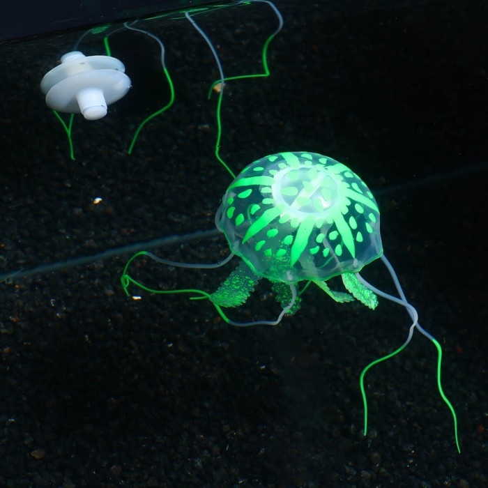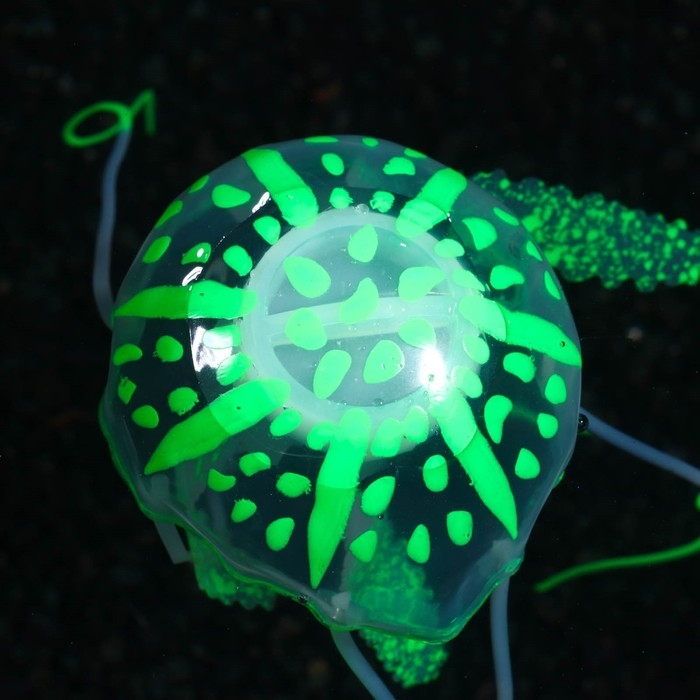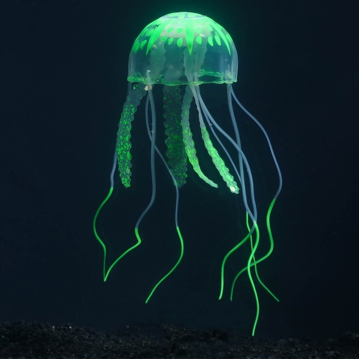 Декор для аквариума "Медуза" силиконовая, флуоресцентная, 5 х 5 х 15 см, зелёная