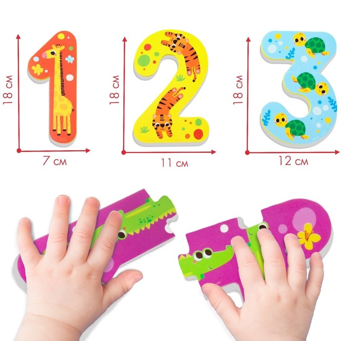 Мягкий пазл для малышей «Учим цифры: Животные», 5 пазлов, Крошка Я