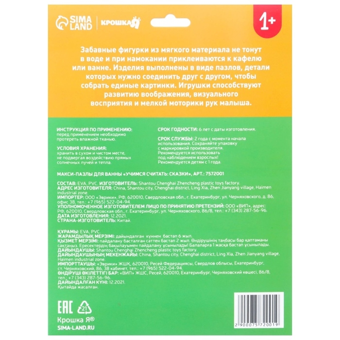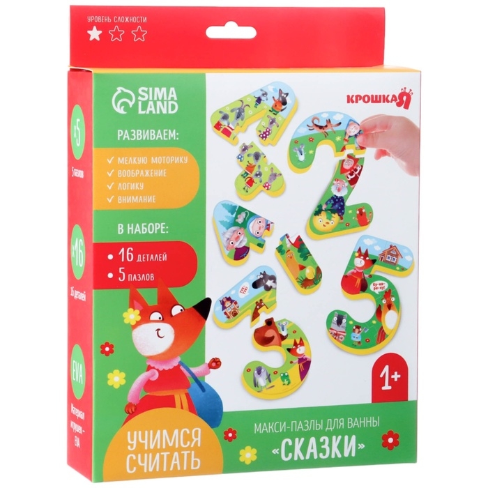 Мягкий пазл для малышей «Учим цифры: Сказки», 5 пазлов, Крошка Я