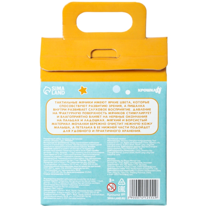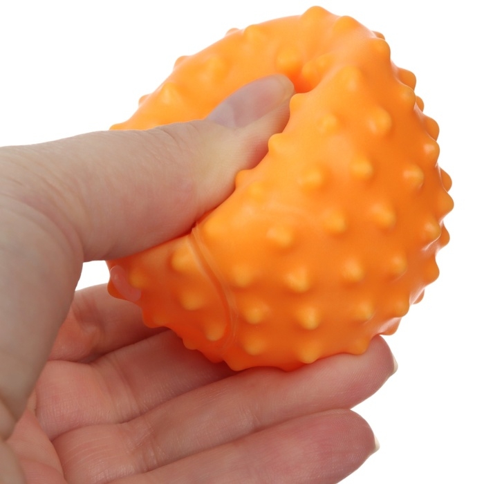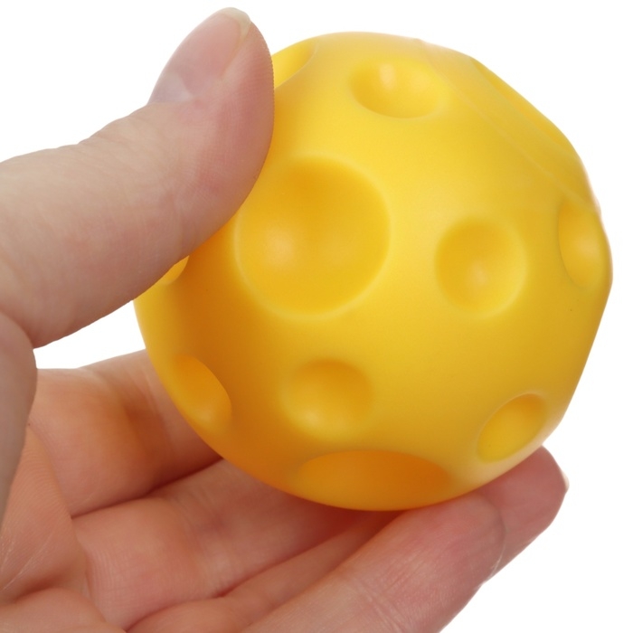 Мячики с рельефной массажной поверхностью способствуют развитию мелкой моторики и тактильных ощущений. Давление на фактурную поверхность мячиков стимулирует и благоприятно воздействует на нервные окончания, ответственные за большинство процессов в организме. Шарики имеют яркие цвета, которые способствуют развитию зрения, а пищалка внутри развивает слуховое восприятие.